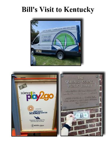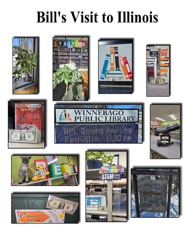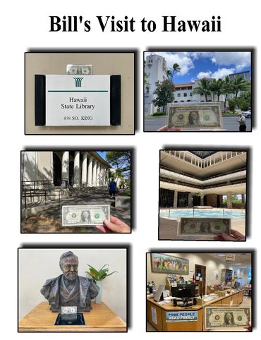 "Bill" is a $1 bill making its way to all 50 States, one rural library at a time, one in each state. The project aims to bring awareness of small rural libraries and their value to the communities that they serve. Bill has traveled thousands of miles and has still not finished his journey. When he returns to Rupert, Vermont, I hope to print a record of his journey with host libraries history and photos of his hosts' facilities and communities. This project began in the spring of 2022 as a way of easing stress and anxiety of emerging from the pandemic which had a serious impact on small, rural libraries. The first "Bill" Project was local here in Vermont and involved one library in each of the States' 14 Counties. Everyone really enjoyed the project and have been extremely supportive in this current project. "Bill" is more than a rather silly adventure, "Bill" is the spirit of small-town America! Some of the towns participating in the ALL 50 2022 Project have populations of less than 1,000 souls! One of the libraries serves an entire COUNTY!! "Bill" is imagination, hard work, innovation, and dedication all rolled into one cool little symbol. Don't underestimate his impact.