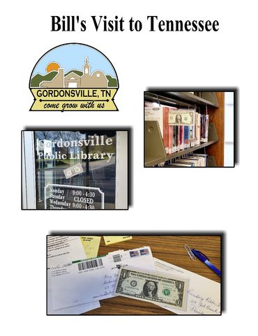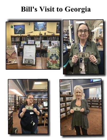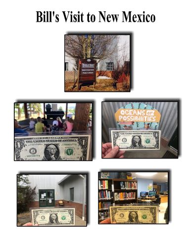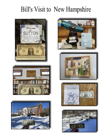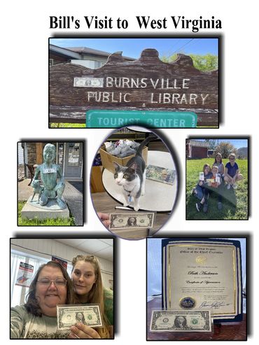 "Bill" is a $1 bill making its way to all 50 States, one rural library at a time, one in each state. The project aims to bring awareness of small rural libraries and their value to the communities that they serve. Bill has traveled thousands of miles and has still not finished his journey. When he returns to Rupert, Vermont, I hope to p