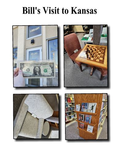 "Bill" made it to the Silver Lake Public Library in Silver Lake Kansas where he played a little chess with Brynne Lassiter, the new Director.